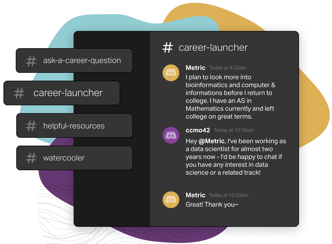 Tap into the #career-launcher channel to find people just like you to share tips and engage in conversation.